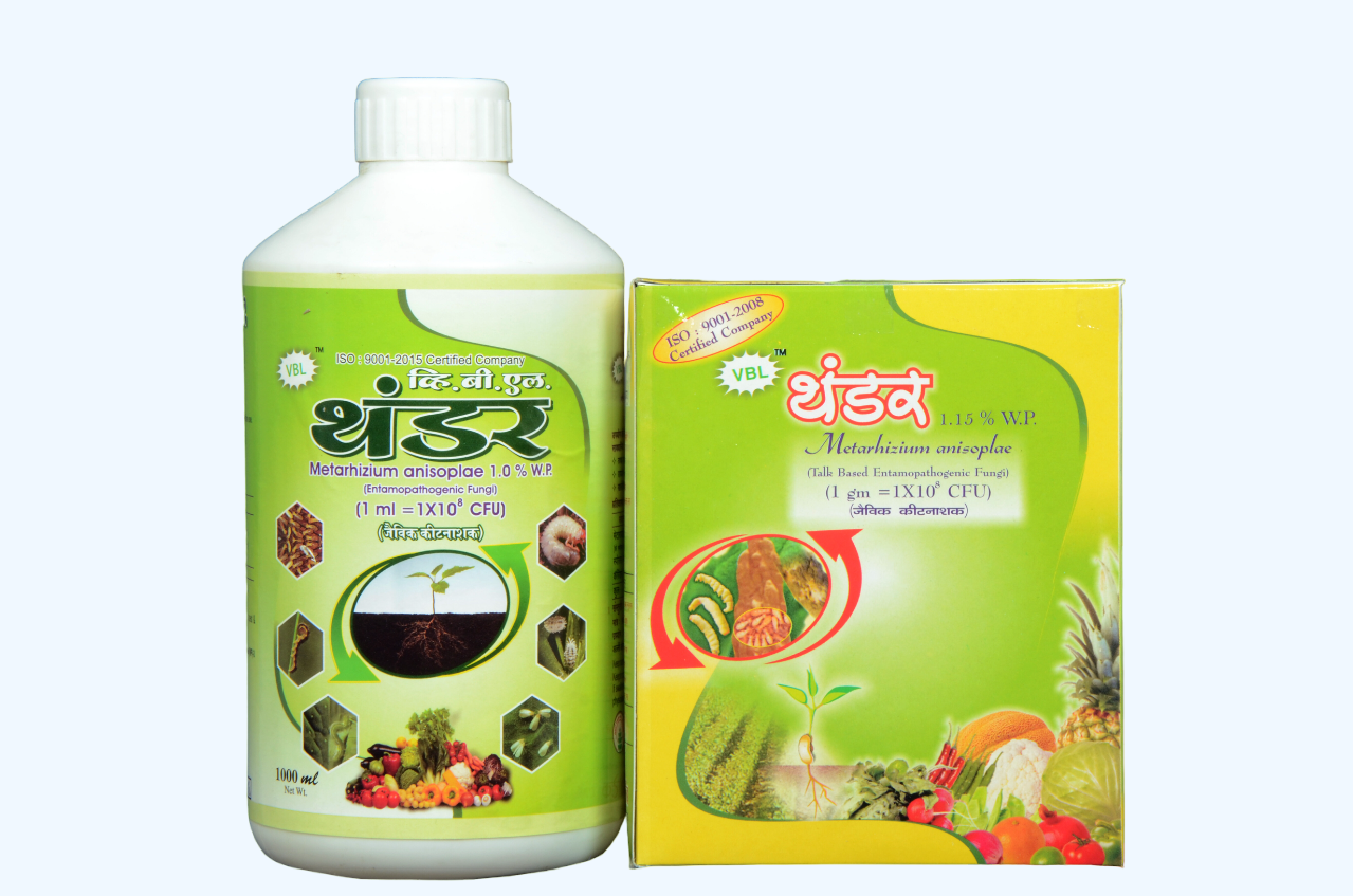 VBL THUNDER is a new kind of termite,white grub,Semilooper and other larva as well as Sucking pest control product. VBL THUNDER utilizes a naturally occurring soil fungus called Metarhizium anisopliea to attack termites where they are a problem and where they live.